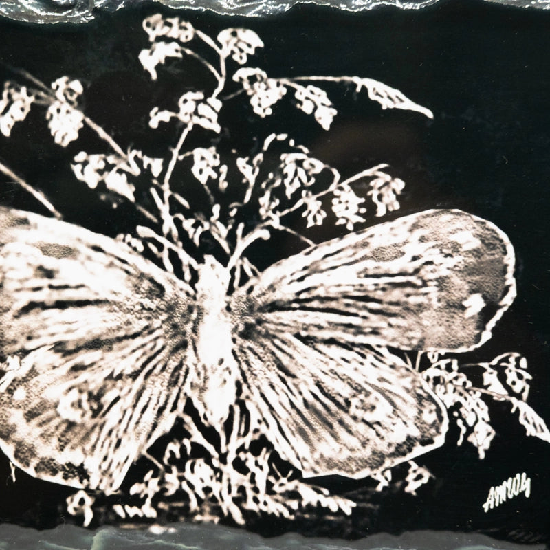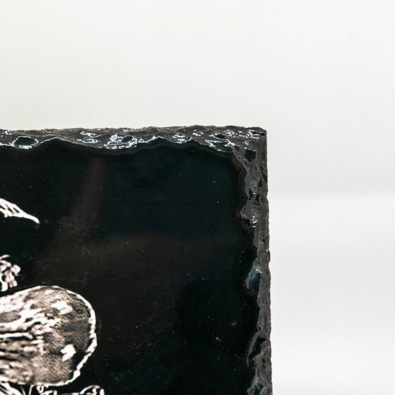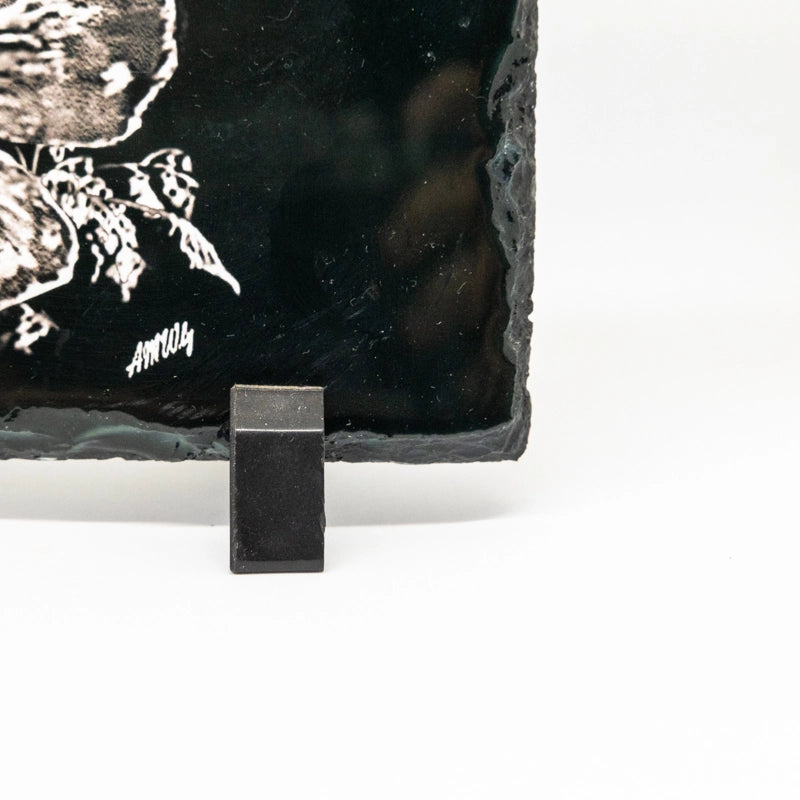 Printed on slate - scraperboard etching by Angela Winstanley - 18 x 9cm can be displayed on stand or wall hung.