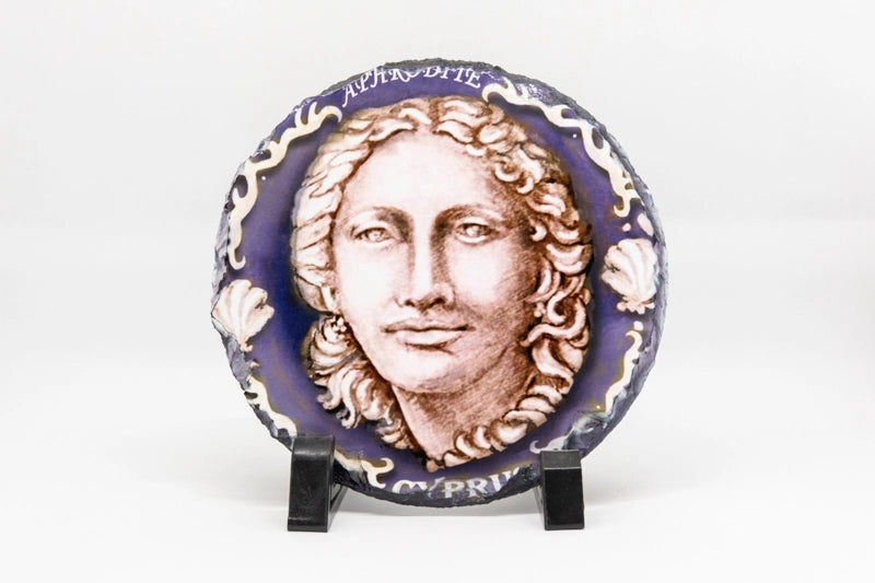 Printed on slate -painting by Angela Winstanley -10cm diameter can be displayed on stand or wall hung.