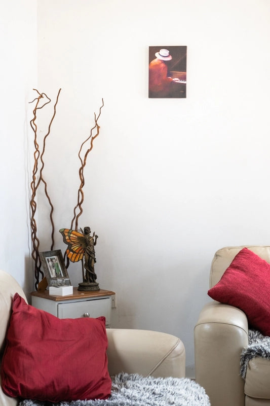 From the series ' Musicians in Hats' - where the focus is on posture of musicians whilst playing - facial expressions covered by the panama hat. 27 X 21cms.
