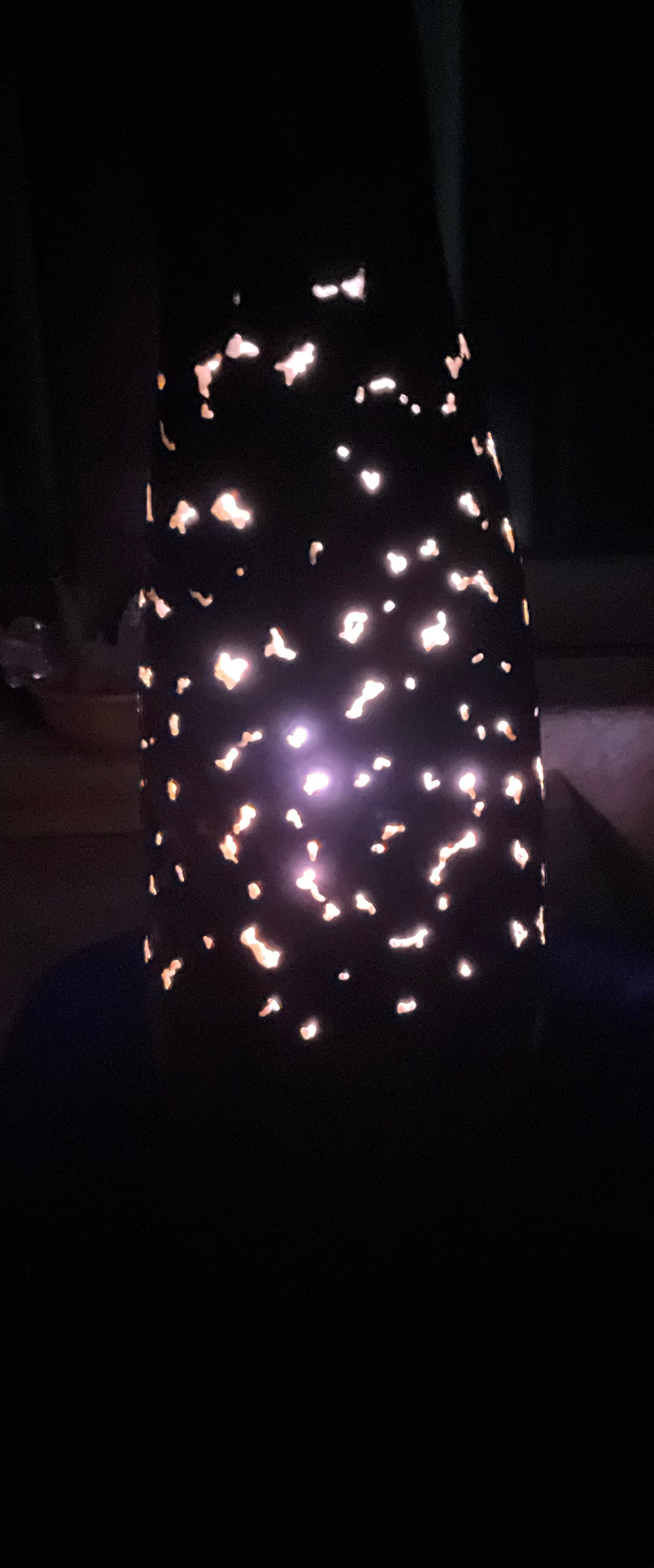 This exquisite multi-flowered gourd features a wood-burnt, intricately carved design enhanced with vibrant acrylic finishes. Powered by mains electricity, it emits a dazzling light effect that beautifully highlights the delicate craftsmanship. Ideal for adding an artistic and luminous accent to any space.