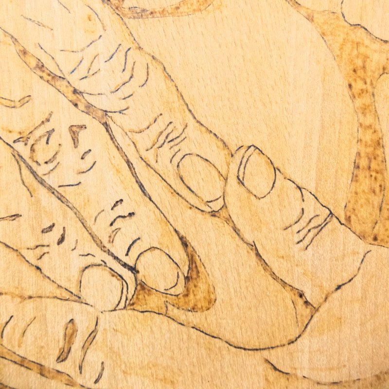 Introducing Chopping Board Babe in Hand, a stylish Beachwood board perfect for your kitchen. This 14" x 9" board is beautifully woodburnt with a heartwarming image of a newborn being held in old hands. Made of high-quality materials, this board is not only functional but also adds a touch of sentimentality to your cooking experience.