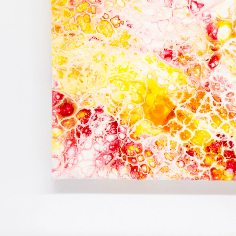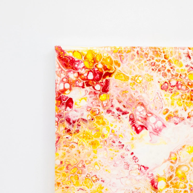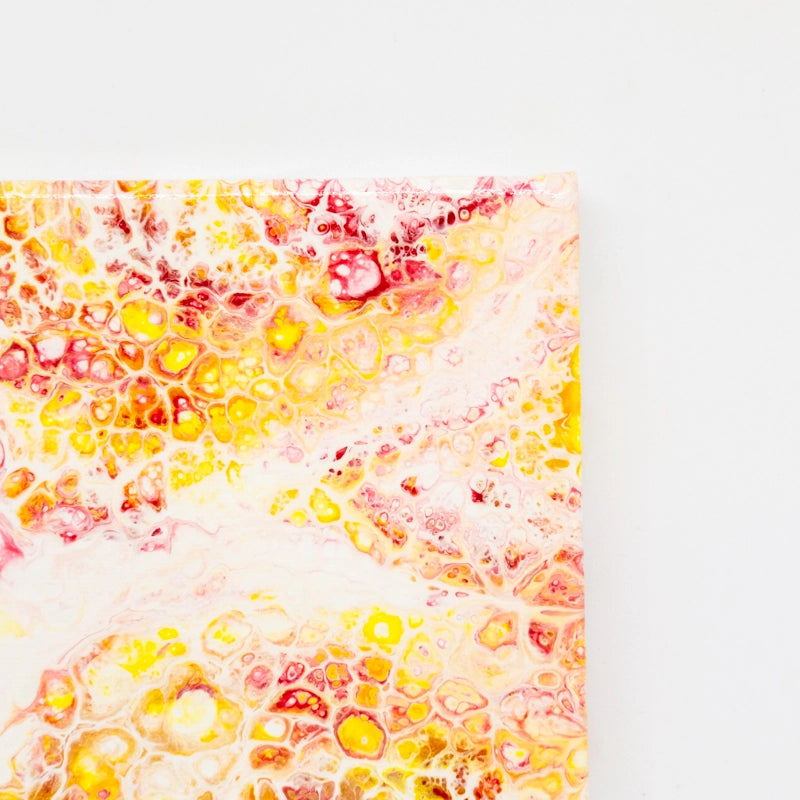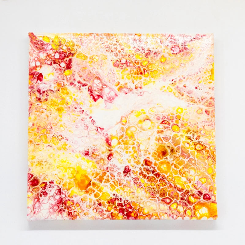 Unique, original, acrylic pour painting on stretched canvas, covered in clear varnish. Can be hung in any orientation to give a different look each time.