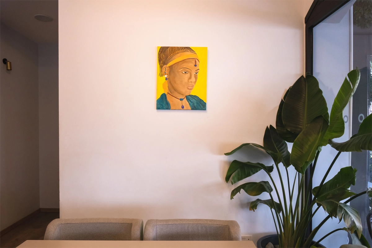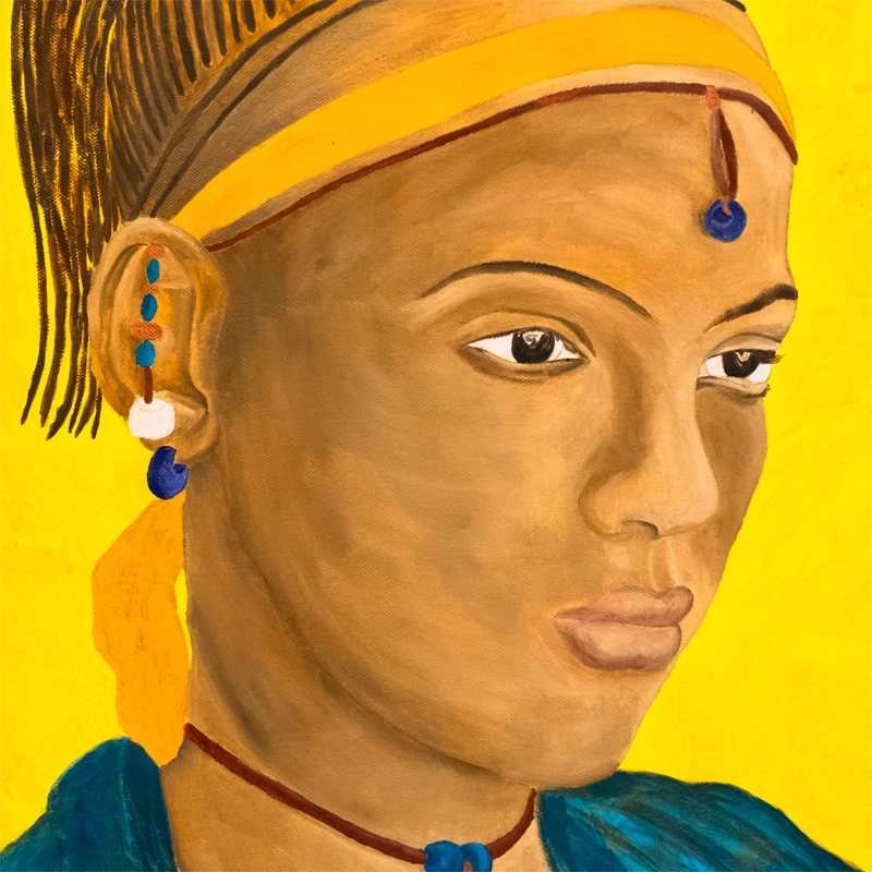 This canvas features an oil painting of a pensive African female, with a profile view. Measuring 20” x 16” (50cm x 40cm), it is a captivating work of art perfect for any art enthusiast.